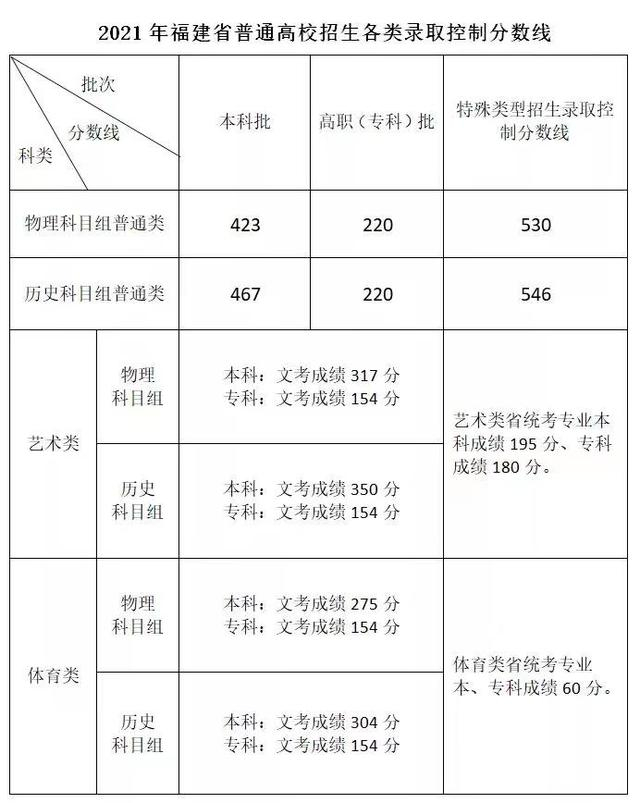 6月25日,福建省教育考试院公布了该省普通高校招生各类控制录取分数线。图/建省教育考试院官方微信公众号