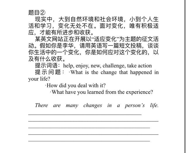 北京教育考试院专家表示,英语文段写作在考查写作应用性和创新性的基础上,增大了题目的开放性,在真实的情境中,对学生的综合语言运用能力进行考查,其中,题目一要求考生给公众号留言,即是基于真实语言使用情境的真实任务;题目二让学生在回顾自身经历的过程中,认识到积极适应变化的道理,“试题的真实情境和开放性给予学生更大的发挥空间,使学生能够结合自身实际,发挥想象力和创造力,实现在真实语境中运用语言充分表达观点。”