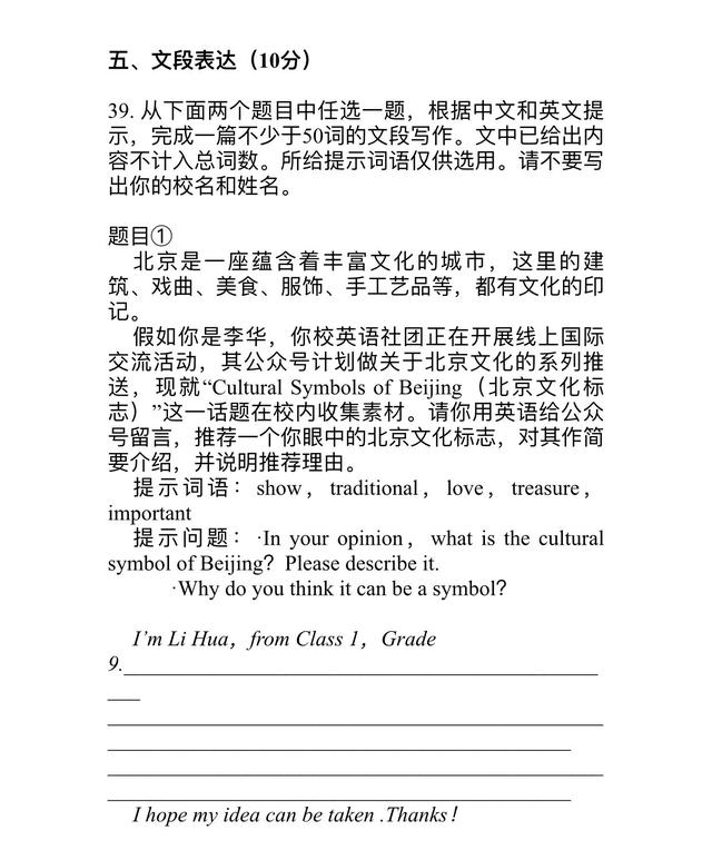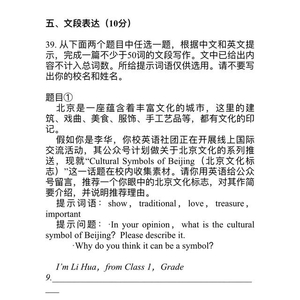 原标题:北京中考英语作文:替“李华”介绍北京文化标志和讲述适应变化