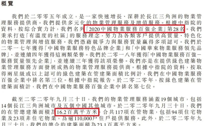 “物业服务百强企业第24名”,只管理了1730万平米的物业