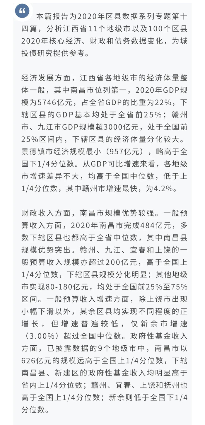 原标题:【今日推荐】2020年区县数据专题——江西篇 来源:兴业研究