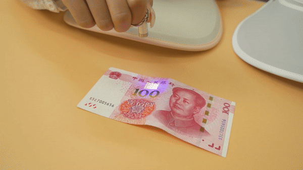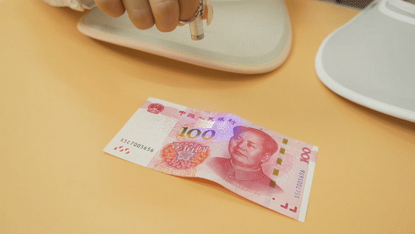再来一个小实验。咱们都知道,纸币在紫外线灯下是能照出100块钱的水印的。