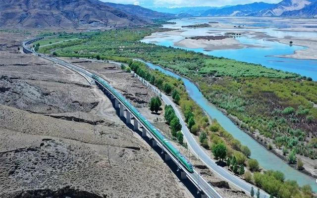 值得一提的是,拉林铁路90%以上的线路在海拔3000米以上,16次跨越雅鲁藏布江。