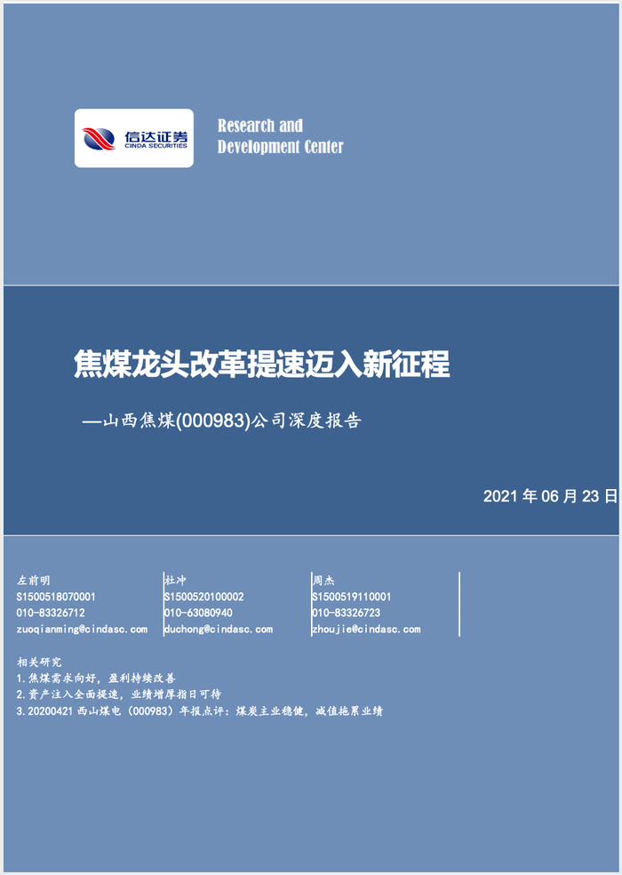 本文源自报告:《山西焦煤深度报告—焦煤龙头改革提速迈入新征程》