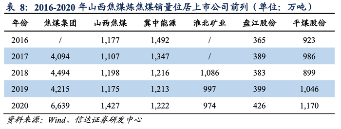 一、山西省人民政府控制的炼焦煤企业