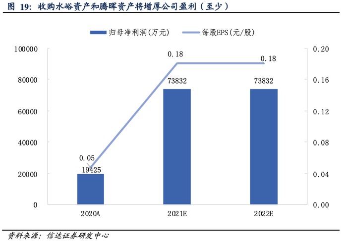 由于存在业绩承诺,考虑股权比例,2020年归母净利润将至少增加19424.88万元(水峪煤业1-9月净利润602.99万元,10-12月业绩承诺13491.15万元、实际完成业绩14926.16万元;腾晖煤业1-9月净利润3181.05万元,10-12月业绩承诺3517.69万元、实际完成业绩4,457.63万元);此后两年内每年至少增加73832.00万元(水峪煤业59715.89万元、腾晖煤业27678.64万元),2020-2022年每股EPS分别增加0.05、0.18和0.18元。