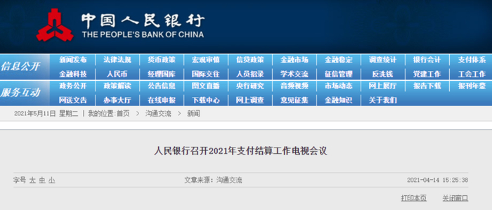 4月14日,人民银行召开2021年支付结算工作电视会议。会议就2021年重点工作任务作出部署,其中就要求适当降低小微企业支付手续费。