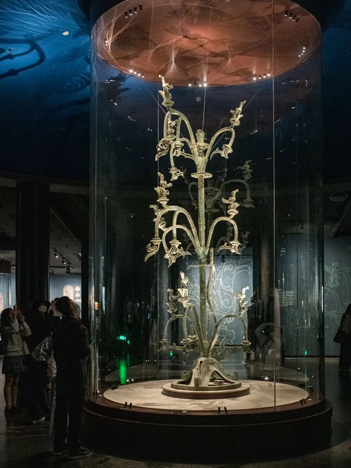 将近4米高的青铜神树(原高或可能达到5米),上面还立着9只神鸟。