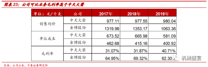 沉积环节技术领先,自制碳纤维预制体造就高毛利。西安超码(中天火箭)的先进碳基复合材料的致密化工艺采用以丙烯为碳源、氮气为稀释气体的等温化学气相沉积工艺结合树脂低压浸渍炭化工艺,丙烯需要瓶装长途运输至生产现场,运输成本较高。此外,采用化学气相沉积工艺结合树脂低压浸渍炭化工艺的生产周期较长,且产品后期需要氯气或氟利昂纯化才能满足使用要求,生产制备成本较高。金博股份采用单一碳源气体化学气相沉积技术制备先进碳基复合材料,成本更低、技术优势明显。同时由于西安超码不生产碳纤维预制体,也使得中天火箭毛利率低于公司。