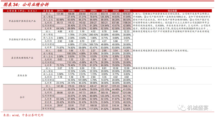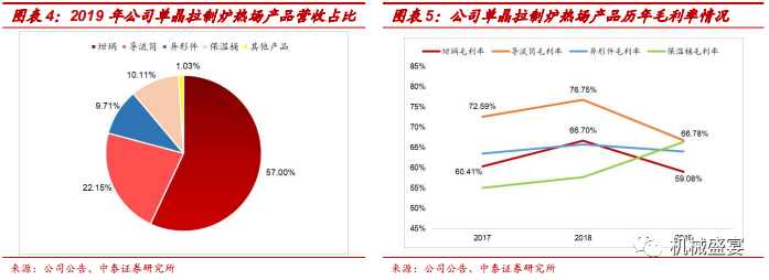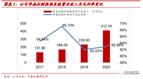 各项业务盈利能力优秀。 2020年,公司单晶拉制热场系统产品盈利能力有所上升,毛利率由2019年62.02%上升至2020年62.88%。2019年毛利率下降的原因为:2018年“531新政”之后,公司为维持客户关系选择将产品降价,进而导致毛利率有所下降。