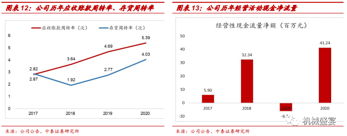 应收账款周转率持续提升,营运能力出色。公司营运能力出色,付款信用期一般为3个月,销售回款情况良好。应收账款周转率和存货周转率不断上升。