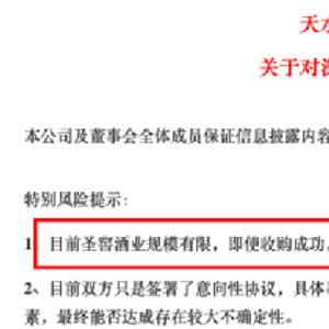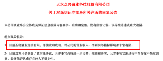 6月25日晚间,众兴菌业发布关于对深圳证券交易所关注函的回复公告称,目前圣窖酒业规模有限,即使收购成功,对公司的营业收入、净利润等指标影响都非常有限。