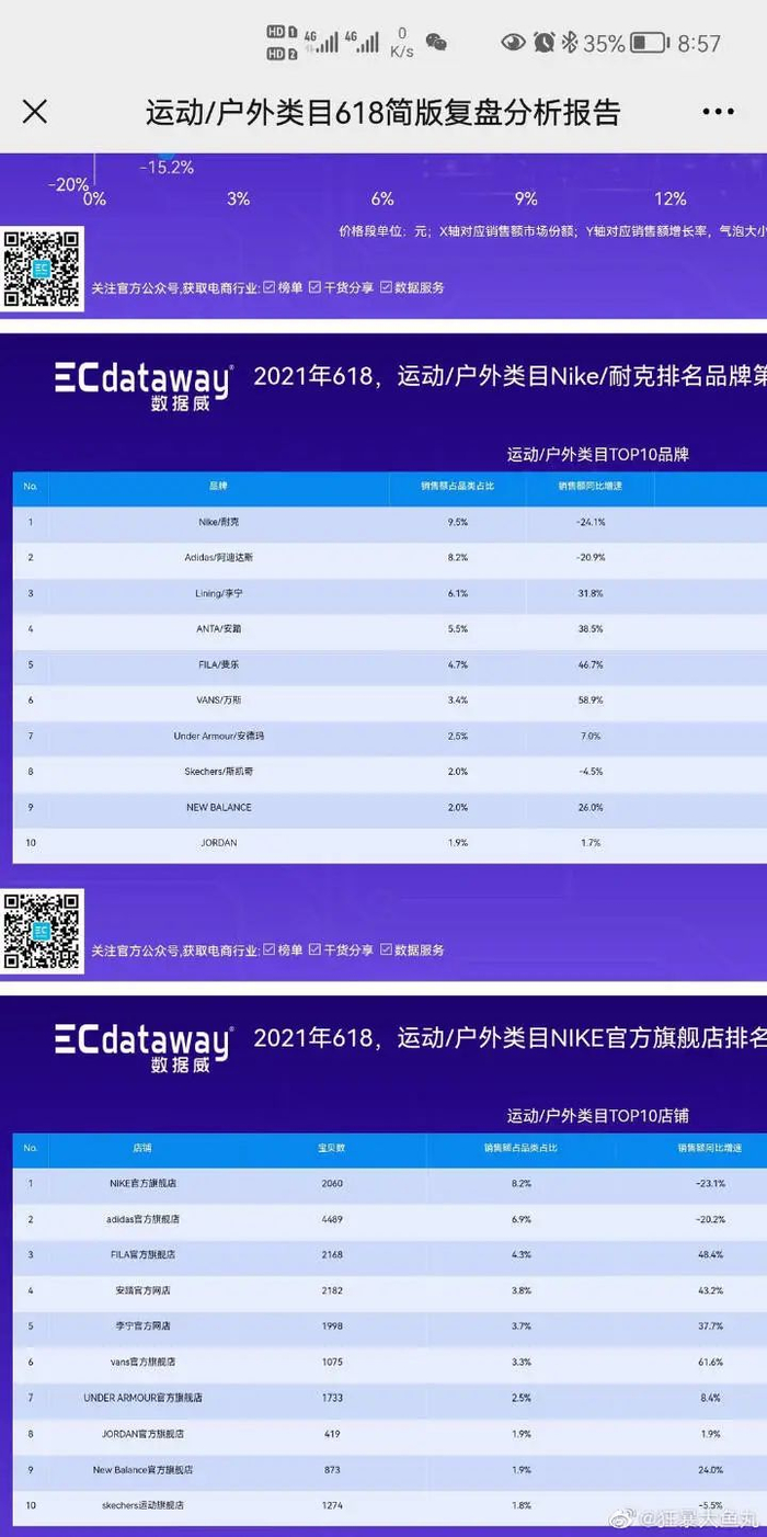从今年618销售情况看,耐克销售额同比下滑了逾20%。