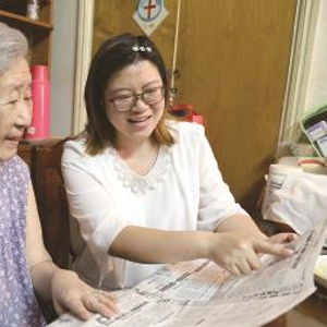 朱颖还结对了5对独居老人,她像女儿一样陪他们拉家常,听他们倾诉,关心他们的生活,有需要帮助代办的事情也会尽力去做。87岁的浦阿姨是朱颖的结对对象。去年12月,浦阿姨的丈夫去世后,浦阿姨非常伤心难过,朱颖就经常安慰她,鼓励她要为自己的幸福更努力更加油,尽量往前看。浦阿姨说:“小朱很可爱,以前不觉得,自从我先生‘走’了后,感到如果没有小朱聊天,真的不知道该怎么办才好。”
