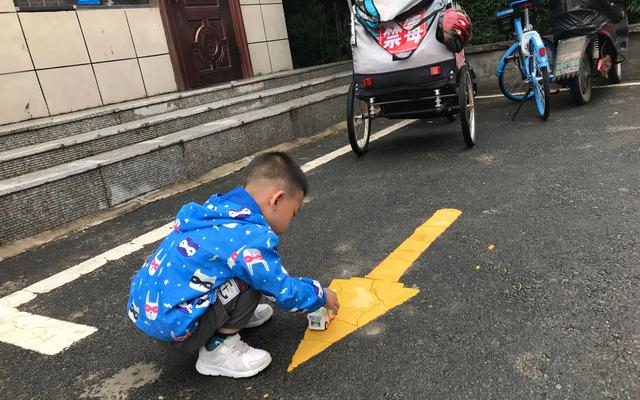 高高坐在拖车里,安静一会儿,就把玩具车按在路面上滑行,发出刺耳的摩擦声。罗新华紧急停车,批评儿子不能把手伸到路边。
