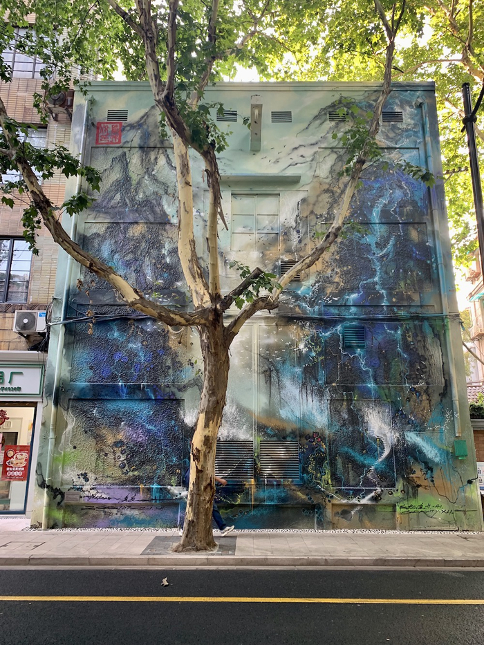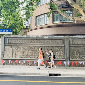 清水墙砖、水沙石墙面,配上统一的深色窗框和黑漆铁门,南昌路上的老建筑不仅外观完整,还保留了浓浓的复古韵味。沿街围墙高度被降低,墙顶增补鲜艳的花卉,甚至变电站墙面也成为了艺术家的画布,为南昌路增添了色彩。