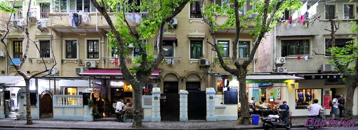 两座大楼呈对角线位置,对立而望,虽然历经近百年,但至今仍在使用中,建筑的一楼或改成个性十足的服装店、咖啡馆,或变成烟火气满满的水果店、超市或餐厅,都体现浓浓的沪上风情。