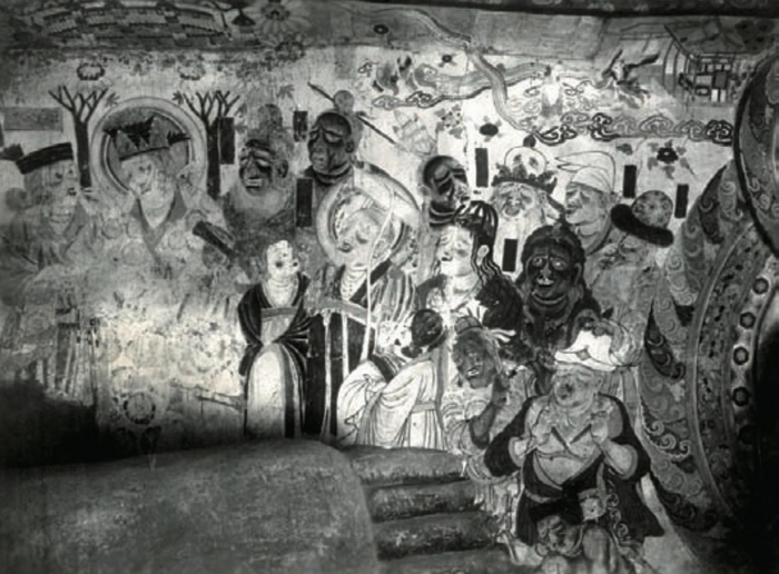 努埃特于1908年拍摄的一些壁画在今天已有明显变化,例如这幅照片左侧的两位人物的面部现在已损毁。