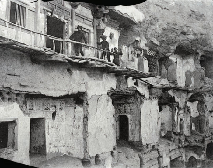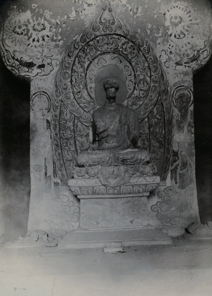 这张莫高窟第4窟的照片是斯坦因在莫高窟的洞窟里拍摄的第一张照片,时间为1907年5月22日下午3点,曝光时间5分钟。 照片收藏机构匈牙利科学院图书馆授权使用