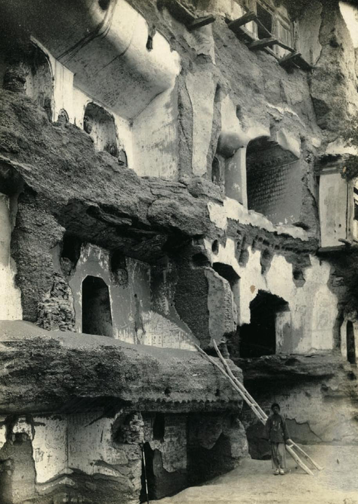 敦煌莫高窟第432窟附近的洞窟群,斯坦因摄,1907年5月31日。 照片收藏机构匈牙利科学院图书馆授权使用