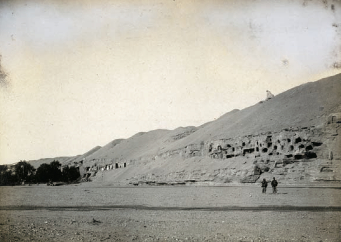 敦煌莫高窟外观,斯坦因1907年5月拍摄。收藏机构匈牙利科学院图书馆授权使用。