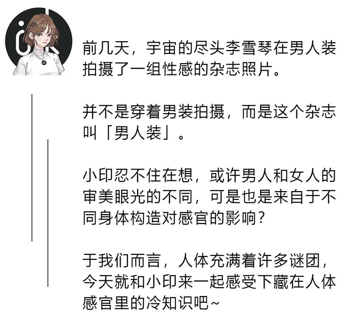 原标题:李雪琴登男人装:男女脑回路真不同?