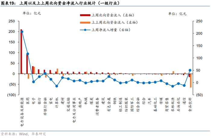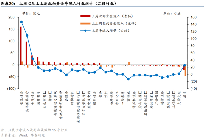 资金面跟踪:北向资金净流入,电新、医药净流入较多