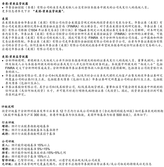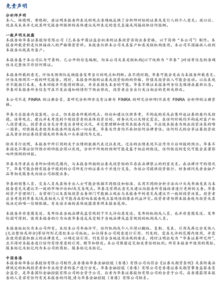 本公众平台不是华泰证券股份有限公司(以下简称“华泰证券”)研究所官方订阅平台。相关观点或信息请以华泰证券官方公众平台为准。根据《证券期货投资者适当性管理办法》的相关要求,本公众号内容仅面向华泰证券客户中的专业投资者,请勿对本公众号内容进行任何形式的转发。若您并非华泰证券客户中的专业投资者,请取消关注本公众号,不再订阅、接收或使用本公众号中的内容。因本公众号难以设置访问权限,若给您造成不便,烦请谅解!本公众号旨在沟通研究信息,交流研究经验,华泰证券不因任何订阅本公众号的行为而将订阅者视为华泰证券的客户。