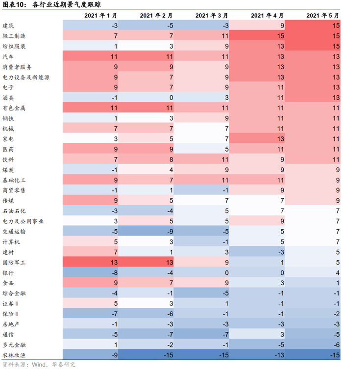 行业景气度跟踪:推荐建筑、轻工制造、汽车、消费者服务、纺织服装