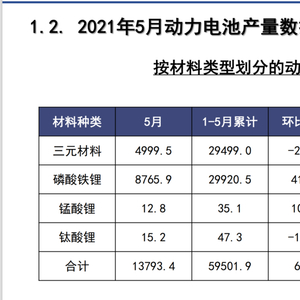 2021年5月动力电池产量数据 来源:中国汽车动力电池产业创新联盟
