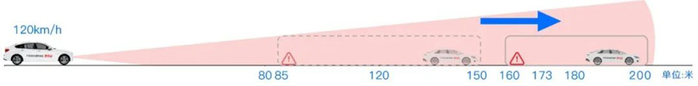 直行道路上,垂直分辨率由0.2°到0.1°的提升,意味着感知算法对车辆的识别距离由120-150米提升到180-200米,对静态小型障碍物的检测距离由85米提升到160米,对于驾驶时速120km/h行驶的智能驾驶车辆而言,这是从安全制动距离到舒适制动/变道距离的质变,将为用户乘坐舒适度体验带来巨大飞跃。