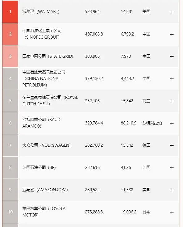 另一个值得注意的情况是,前十强中,荷兰皇家壳牌石油公司、英国石油公司、雪佛龙公司、美国康菲石油公司都是石化企业。