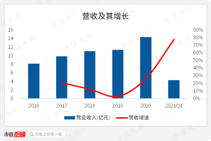 2016-2020年,公司营业收入由8.2亿元增至14.4亿元,CAGR为15%。