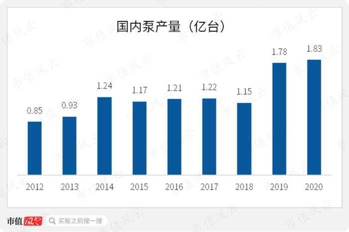 国内民用离心泵是一个千亿级市场。根据2020年中国通用机械行业经济运行简报显示,2020年我国全年泵产量1.8亿台,同比增长2.8%。