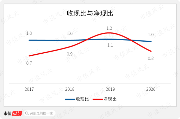 上市以来,公司收现比持续保持在经验值1.0以上,表明收入的现金含量充足。同期,盈利质量有所起伏,整体表现良好,净现比由2017年的0.7逐步提高至2019年的1.2,2020年又降至0.8。