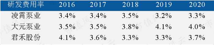 与可比公司对比来看,公司的研发费用率与大元泵业、君禾股份基本保持一致,后两者2020年分别为4%及3.7%。