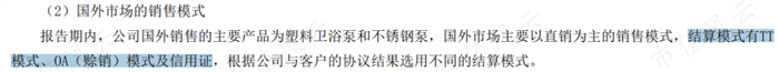 公司在国外的销售模式中,主要采用TT结算(预收30%左右,信用周期为20-60天)、赊销结算(货到付款)及信用证结算(信用周期为60-120天)。