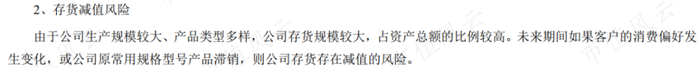 此外,公司也强调由于产品类型多样,存货规模较大,未来如果客户的消费偏好发生变化,或公司原常用规格型号产品滞销,则公司存货存在减值的风险。