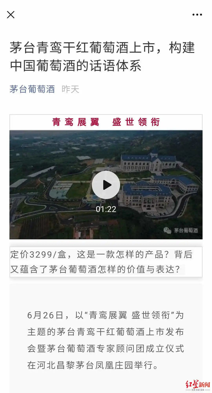 红星资本局注意到,该酒并不是上市公司贵州茅台(600519.SH)所生产,而是来自于贵州茅台酒厂(集团)昌黎葡萄酒业有限公司(以下简称“茅台葡萄酒”),属茅台集团的子公司。