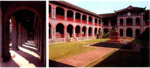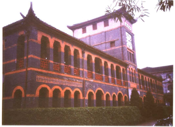 检核近现代历史文献资料可知,上海圣约翰大学即曾有一建筑物,名“怀施堂”。其落成于1894年,建筑面积五千零六十一平方米,整体为二层砖木结构。设计方为通和洋行(Atkinson & Dallas Architects and Civil Engineers Ltd.),也是1904年美国圣路易斯世界贸易博览会中国馆的设计者,其在西方建筑美学的基础上,参考中国古典建筑风格,规划出一尖顶、檐角上翘之钟楼,与两旁之大屋顶、外墙带有拱廊之建筑连接,直构成一四合院,为该校标志性建筑。校长卜舫济(Pott. F. L. Hawks 1864-1947)谓其“外观略带华式”,实际上也是中国大学校园里最早出现的中西合璧式建筑,因其美观,引起各教会学校的模仿。落成后,校方为纪念该校创始人、美国圣公会上海主教施约瑟(Schereschewsky,一译“施勒楚斯基”),将其命名为“怀施堂”(Schereschewsky Hall),1951年后改名“韬奋楼”。