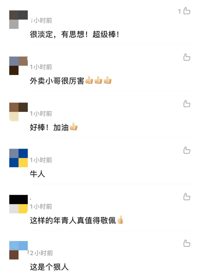 许多网友了解到“外卖小哥”王威的经历后