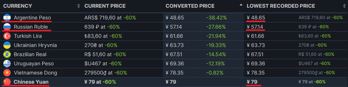 而像是阿根廷这样同属低价区的国家,游戏的价格则要比国区还便宜,这就是为什么有这么多人选择 “ 云移民 ” 的原因。