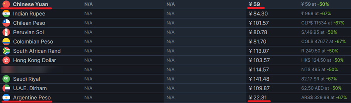 但低价区也是有不同价位的,有不少人为了用最少的钱买到游戏,所以才选择成为精神阿根廷人。