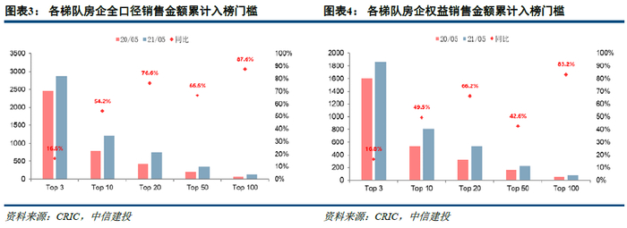 得益于市场景气度的保持和去年低基数原因,地产行业整体1-5月销售金额相较同期均大幅增长。根据克而瑞数据统计,1-5月百强房企整体的销售操盘金额同比增长51.3%。杠杆率较高的房企中,华发股份、首开股份、首创置业、金融街和光明地产的累计全口径销售额分别同比增长77.71%、61.72%、55.67%、131.31%、75.49%,城建发展1-5月的销售额已经与去年全年基本持平建,显示出强劲的增长趋势。华远地产、珠江实业和格力地产的规模较小,数据并未披露。从单月数据来看,首开和华发5月单月销售规模130-140亿,环比4月增加约30亿,首创置业和金融街5月单月销售相较4月单月略有下滑。