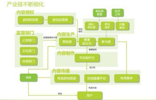 电竞产业链涉及电竞游戏研发运营、电竞赛事运营执行、电竞衍生品研发生产,未来在政策扶持下还会不断扩充完善。