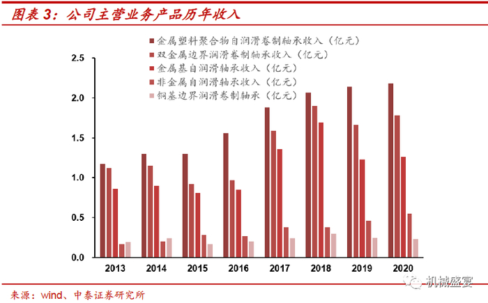 ①自润滑轴承国产龙头,产品远销海内外。公司已发展成为我国自润滑轴承领域龙头企业,产品涵盖金属塑料聚合物自润滑卷制轴承、双金属边界润滑卷制轴承、金属基自润滑轴承、非金属自润滑轴承、铜基边界润滑卷制轴承等。公司自主掌握了材料配方制备工艺等十多项行业领先的技术,构筑了核心竞争力。定位于中高端市场,优质的客户群体彰显了公司的渠道优势和市场美誉度。