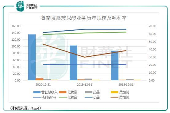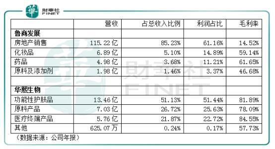 由于鲁商发展的药品管线涉及产品种类更加丰富,其毛利率亦低于只从事玻尿酸医疗终端产品生产及销售的华熙生物。