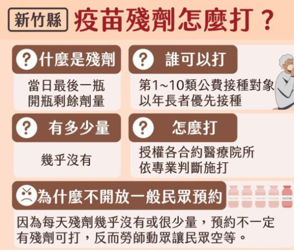 据中时新闻网报道,在指挥中心宣布开放疫苗残剂施打后,各县市都出现“残剂之乱”。