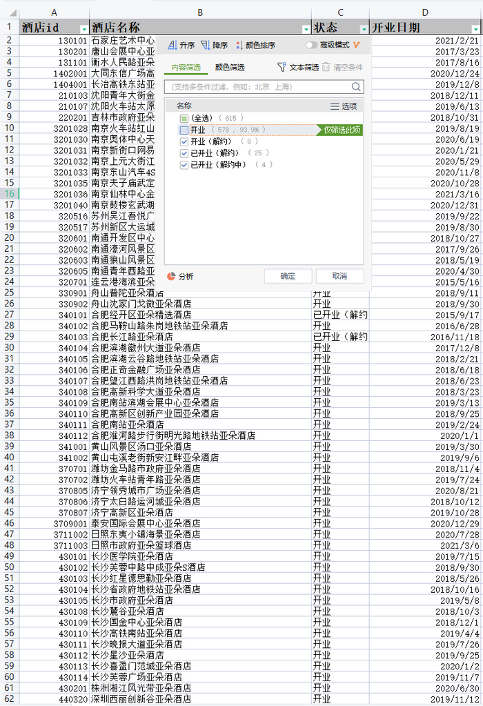 为核实该加盟商爆料真伪,旅界从一名近期亚朵离职员工手中拿到了今年4月份亚朵财务部门为亚朵员工拉出的亚朵酒店清单名录。
