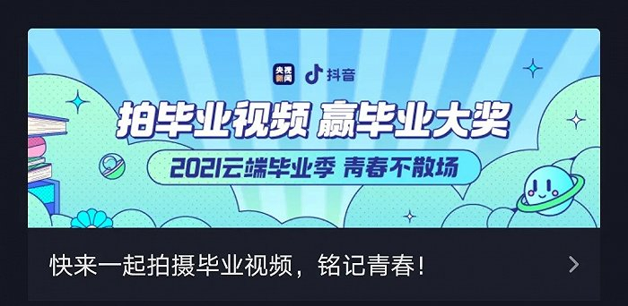 短视频平台中,抖音联合央视新闻再次发起了#2021云端毕业季#主题活动,当前该话题播放量已经超过23亿次。